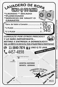 Si estás cansado de lavar tu ropa o simplemente no tienes tiempo para hacerlo, te recomendamos que te acerques al Lavadero de Ropa «Uno Q Te Lava», ubicado en Av. Luro 6663, frente al Hospital Materno Infantil Germani, en la localidad de Laferrere.