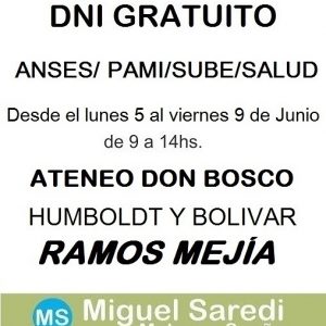 Miguel Saredi anuncia que desde mañana Lunes 5/06 hasta el viernes 9/06 estará el operativo del Estado en tu Barrio en Ramos Mejía, en el horario de 9 a 14hs.