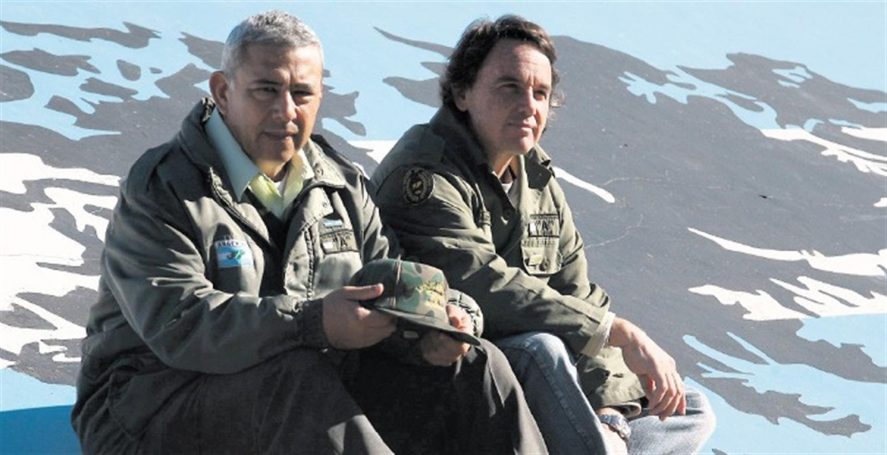Villegas y Tríes en un cenotafio de Pilar, que es una réplica del cementerio de Malvinas