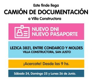 Desde el sábado 24 hasta mañana lunes 26 en Villa Constructora, de la localidad de San Justo se realiza un operativo para tramitar el nuevo dni y el pasaporte arancelado.