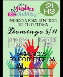 El próximo domingo 5/11, se llevará a cabo un partido a total beneficio del Club CEDIMA, entre los equipos Sarmiento Vs. Equipo de Estrellas.