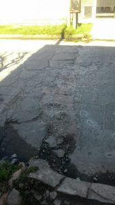Debido al mal estado en el que se encuentra la calle Martin Coronado al 3500, en la localidad de Gregorio de Laferrere, ante cada auto que circula por la calle, se produce un fuerte impacto que repercute a las casas vecinas, con peligro de derrumbe