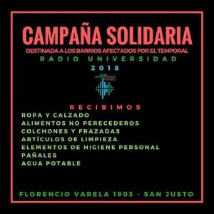 El Dr. Miguel Saredi también destacó a la UNLaM: “También como siempre destacar a la comunidad educativa de la Universidad Nacional de La Matanza, y del Centro de Estudiantes LFU, quienes convocan a la comunidad para colaborar con los vecinos afectados por las lluvias de las ultimas horas. La recepción de los elementos se realizará en esta Casa de Altos Estudios, ubicada en Florencio Varela 1903, San Justo».