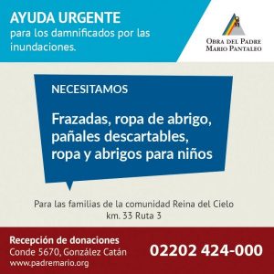 «Asimismo destacar el trabajo de la Obra del Padre Mario, que acompañaa las familias afectadas por las inundaciones ocurridas durante el fin de semana, en Conde 5670 de González Catan, o al 02202 424000» destacó Saredi