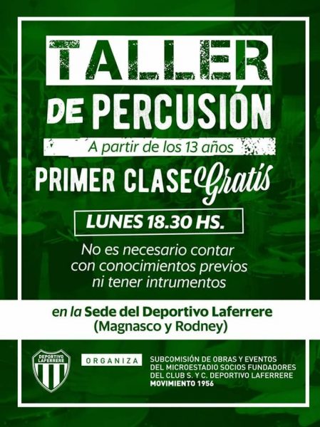 Ya podes acercarte a la sede y sumáte al nuevo taller de percusión.