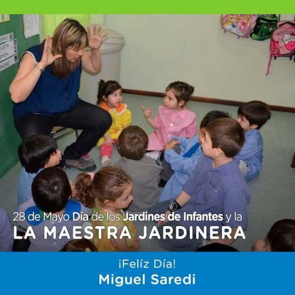 «Feliz día a todas las primeras seños que siempre recordaremos y a todas aquellas que día a día se esfuerzan para cuidar y enseñar a nuestros chicos con tanto amor, con dedicación y con mucho trabajo. Debemos destacar esté día importante, porque sabemos que la educación es la herramienta de transformación de nuestra sociedad, y de la importancia del nivel inicial para el desarrollo de los más pequeños de nuestra familia», afirmó Saredi.