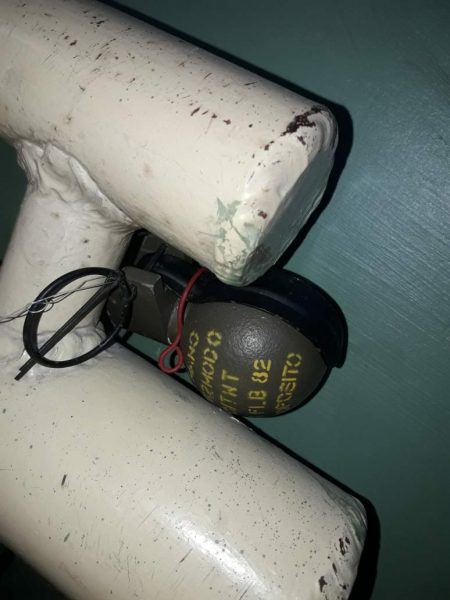 Según las informaciones recibidas, sería una granada ‘FMK2, modelo 0’, diseñada para el Ejército, que estaba atada a una tubería de gas, con una tanza, ubicada en la puerta de la oficina del director. Afortunadamente, no hubo heridos.