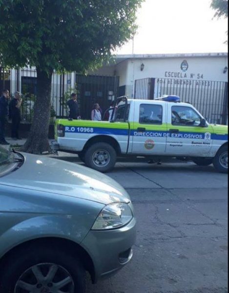 Evacuaron el establecimiento y la comunidad educativa aguarda en la Plasa San Panraleon.