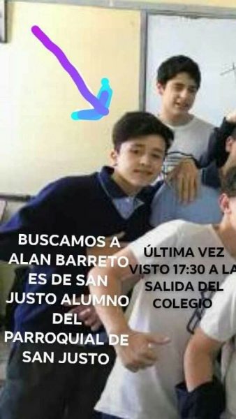 La última vez que se lo vió fue hoy a la salida del Colegio Parroquial de San Justo, a las 17hs. Y viste el uniforme de gimnasia.