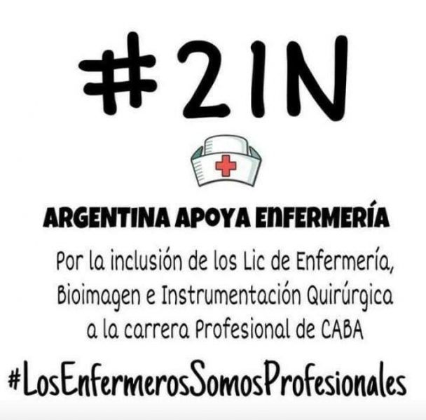A su vez el Dr. Miguel Saredi recuerda su justa lucha: «Hoy 21/11 se realizará el apoyo a los Enfermeros y Enfermeras del país, cómo así también a los que realizan imágenes e Instrumentafores/as quirúrgicos/as, para que sean incluidos a la carrera profesional en CABA».