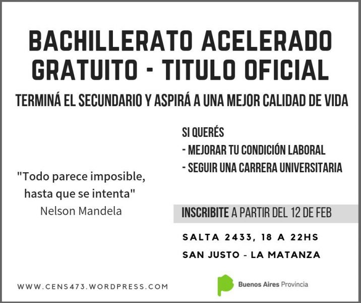 El Dr. Miguel Saredi nos hizo llegar esta información importante para todos aquellos que quieran terminar sus estudios secundarios.
