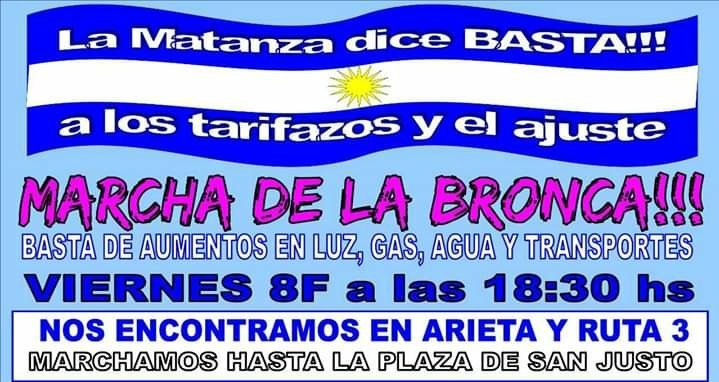 Este viernes se llevará a cabo una nueva movilización contra los aumentos de tarifas en La Matanza. Bajo la consigna “basta de aumentos en luz, gas, agua y transporte”, vecinos y organizaciones sociales llamaron a concentrar a las 18.30 en Arieta y Ruta 3, para marchar hasta el corazón de San Justo en la Plaza General San Martín.