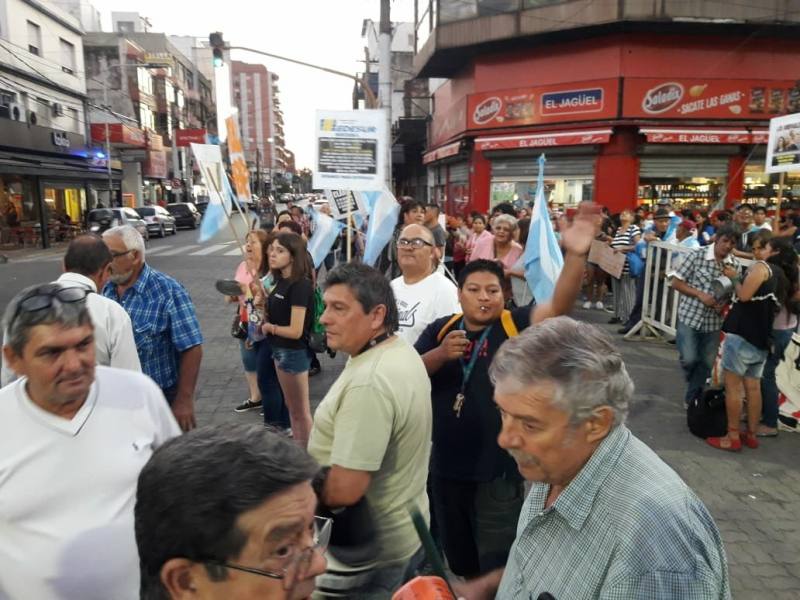 Unos de los tantos puntos del distrito en los que los comerciantes, jubilados, pensionados y vecinos se manifestaron en la peatonal Arieta y Villegas de la localidad matancera de San Justo.