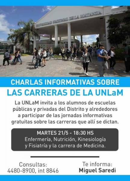 Medicina, Emfermeria, Nutrición, entre otras, en la Universidad Nacional de La Matanza (UNLaM), se dictaran jornadas informativas.
