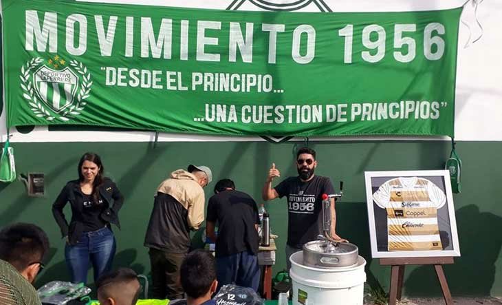Además de dejar su sello en una casaca oficial del Verde, el Diez firmó una remera del equipo al que dirige, que será sorteada por el Movimiento 1956 para hacer obras en el club