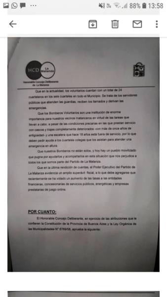 ”El cuerpo deliberativo del HCD, debería llamar a una pronta sesión para tratar este tema tan importante que perjudica fundamentalmente a los Bomberos Voluntarios de La Matanza y a todos los vecinos del distrito”, concluyó reclamando Lasalle.