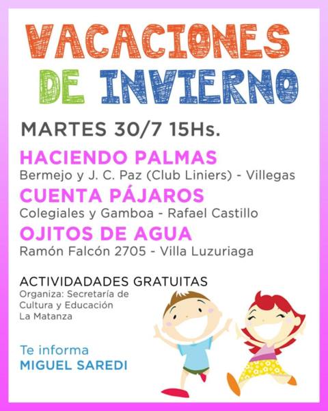 “Por eso quiero ir destacando las distintas formas y modalidades para que las familias Matanceras puedan llevar sus chicos en forma gratuita, por el trabajo de instituciones como la Unlam (Univ de La Matanza), Iglesias, Clubes, y el mismo Municipio.