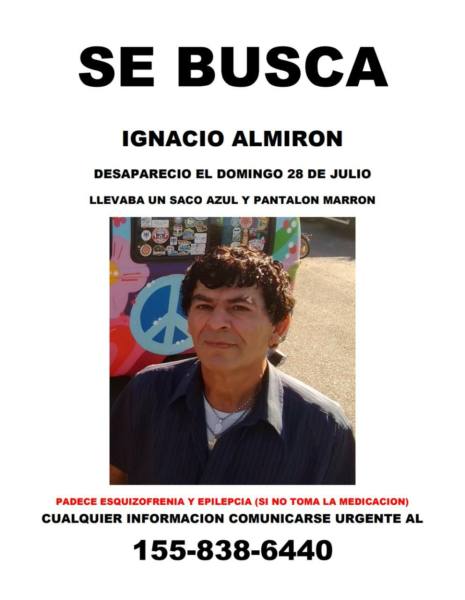 Se trata de Ignacio Almiron que desapareció el domingo 28 de julio, donde llevaba un saco azul y un pantalón marrón