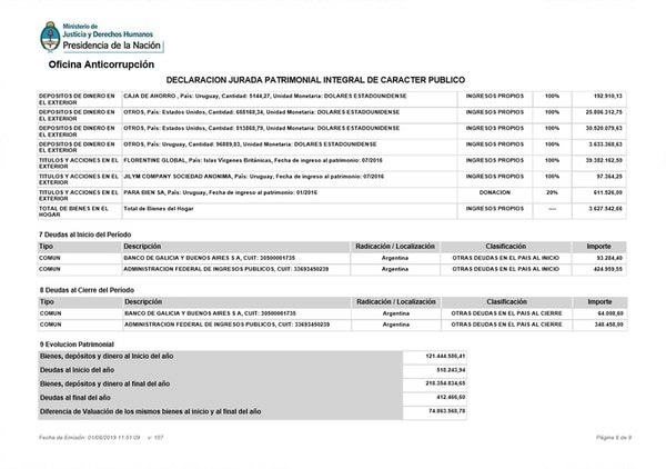 Atesora, en tanto, bonos del Estado nacional, de la provincia de Buenos Aires y acciones de la petrolera estatal YPF y de la brasileña Petrobras por un total de $51 millones, según la documentación presentada ante la OA.