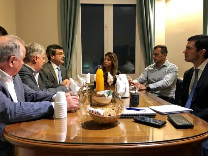 presidente de UIPBA, Union Industrial de la Provincia de Buenos Aires, Martín Rappallini, junto a Silvio Zurzolo,presidente de ADIBApyme, Asociacion de Industriales de Buenos Aires, con Juan Manuel Urtubey, y Bali Bucca, para escuchar sus propuestas, y plantearle una agenda de trabajo a mediano, y largo plazo, que impulse el desarrollo industrial.