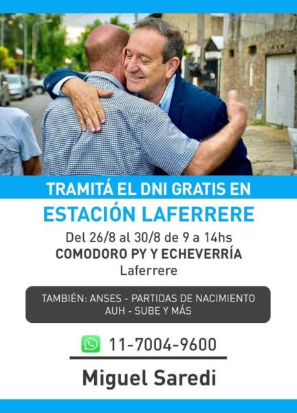 El Dr. Miguel Saredi, Precandidato a Vicegobernador por la Provincia de Buenos Aires y Vicepresidente del HCD de La Matanza, nos contó que hasta el viernes 30/08, se realizarán en La Matanza un operativo del Estado en tu Barrio, en Comodoro Py y Honorio Luque, localidad matancera de Laferrere.