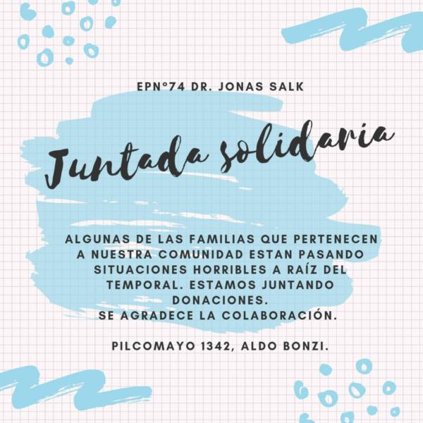 Se juntaran colaboraciones en la Escuela 74 Dr. Jonas Salk