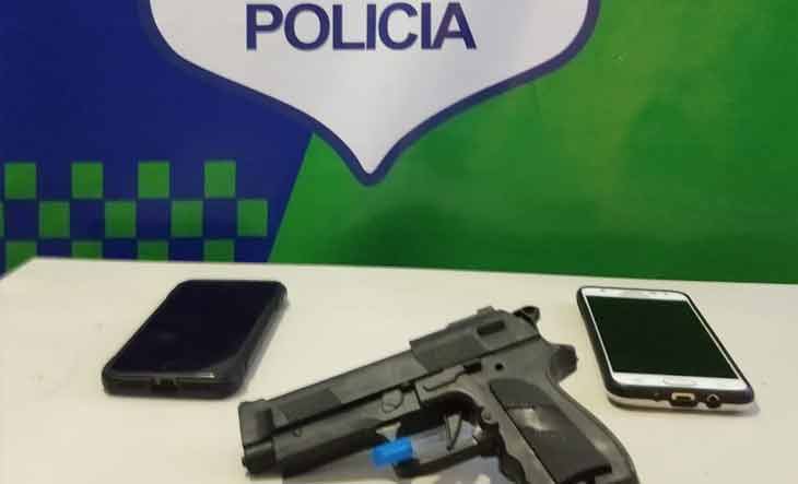 Durante el operativo de detención, que fue efectuado por los agentes de la Comisaría Distrital Noroeste Cuarta del barrio Los Pinos de Villa Luzuriaga, secuestraron la mencionada falsa pistola y dos teléfonos celulares que le habían sustraído a dos chicos de 17 y 18 años.