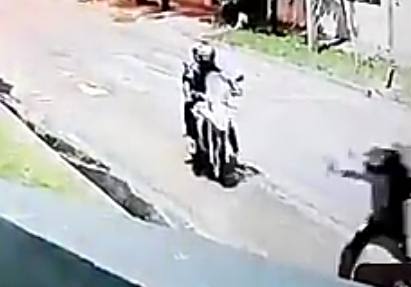 Luego en la plaza de Bonzi, en la calle Cucha cucha y José Alico, se producía otro hecho delictivo, cuando cuatro malvivientes quisieron robarle su moto, a un policia de la ciudad, produciéndose un tiroteo, dando uno de los impactos no fatal al efectivo y uno de los delincuentes habría recibido varios disparon en una pierna.