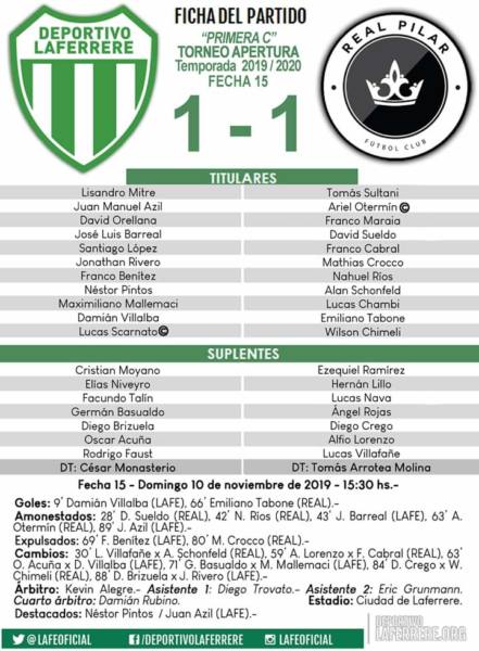 El Deportivo Laferrere perdió la punta del tablero 10 noviembre, 2019 El Villero no pudo con el Monarca y perdió la punta tras la victoria de Cañuelas en la Fecha 15 Con un empate de 1 tanto por lado, el Deportivo Laferrere se despide de la punta.