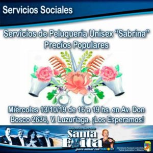 En el movimiento Santa Evita se estarán realizando servicios de peluquería unisex, a precios populares, y asesoramientos y consultas sobre PAMI y ANSeS.
