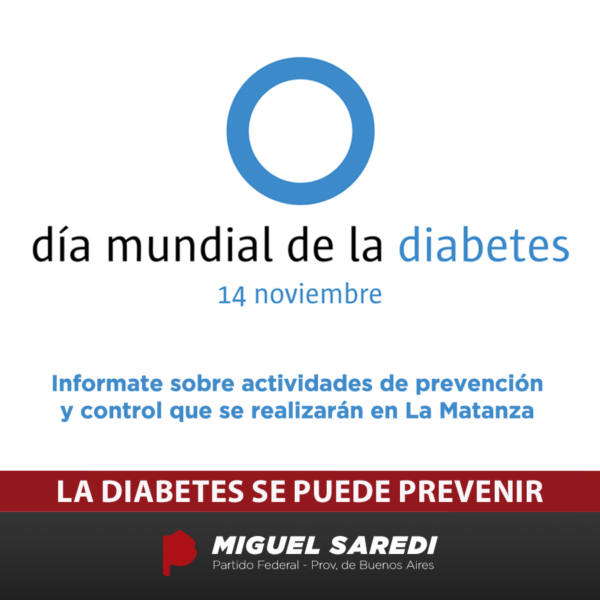 El Vicepresidente del HCD de La Matanza, Dr. Miguel Saredi nos informa sobre las actividades que se desarrollarán este jueves 14 de noviembre en el marco del Día Mundial de la Diabetes: «Es una gran oportunidad para informar y sensibilizar sobre este problema de salud a los vecinos».