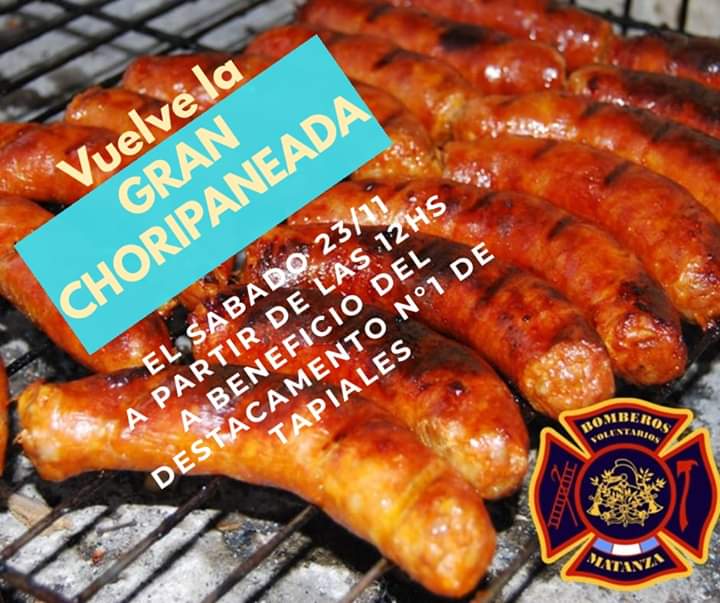 Este sábado, 23 de noviembre, a partir de las 12:00 horas, en el Destacamento N 1 de Tapiales, los bomberos estarán con parrilla lista, para esperarlos a todos, con precios económicos.