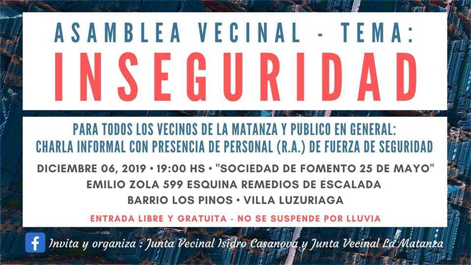 La asamblea va dirigida para todos los vecinos de La Matanza, que tendrá la participación de personal de fuerzas de seguridad.