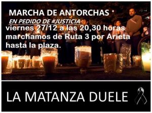 Fuentes de la página de «La Matanza Duele» nos informaron que familiares, amigos y vecinos de las víctimas de inseguridad realizarán una marcha de antorchas en pedido de justicia.