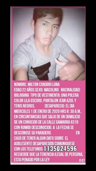 La protesta fue para pedir que la policía implemente tareas de búsqueda a fin de dar con el paradero de Milton Luna, el joven de 22 años desaparecido el 1 de enero. Milton salió de su casa y nunca volvió, si alguien lo vio o tiene información, por favor comunicarse al 1135024596.