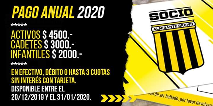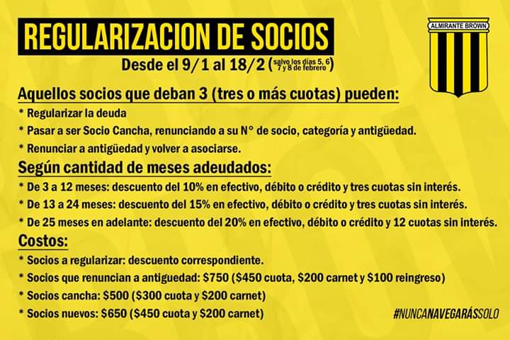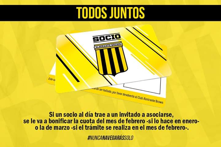 El Club Almirante Brown, en busca de su objetivo, necesita de todos los hinchas, llevará a cabo esta primera campaña de socios con diferentes alternativas.