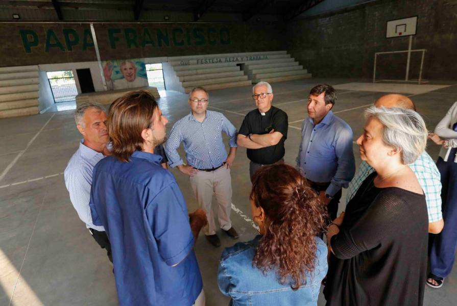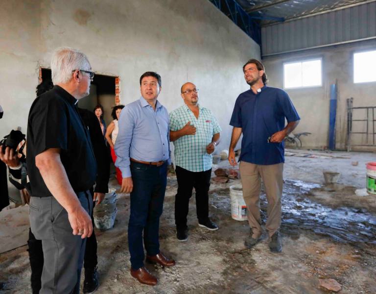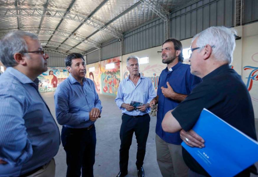 El ministro Daniel Arroyo, junto al Padre «Tano» recorrieron las instalaciones de la Parroquia San José y el polideportivo en el barrio 17 de Marzo de Isidro Casanova.