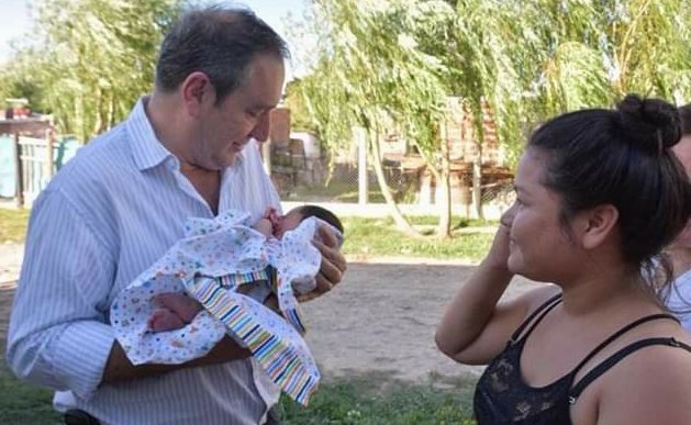 Miguel Saredi junto a vecinos de La Matanza