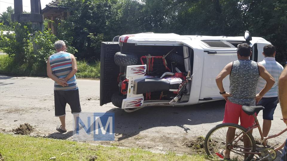 El conductor de la camioneta Ford Ranger blanca chocó contra otro vehículo y debido a la gran velocidad volcó sobre la calle Sapaleri. En la caja de la camioneta transportaba un cuatriciclo que afortunadamente no salió despedido tras el vuelvo.