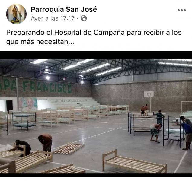 En tiempos de «crisis sociosanitaria», el padre Angellotti, a quien todos llaman Tano en la parroquia San José, de los barrios Puerta de Hierro, San Petersburgo y 17 de Marzo, de La Matanza, destinó el complejo Tierra-Techo-Trabajo, ubicado en Ciudad Evita, en el que los vecinos realizaban actividades deportivas, para levantar un centro de salud de campaña.