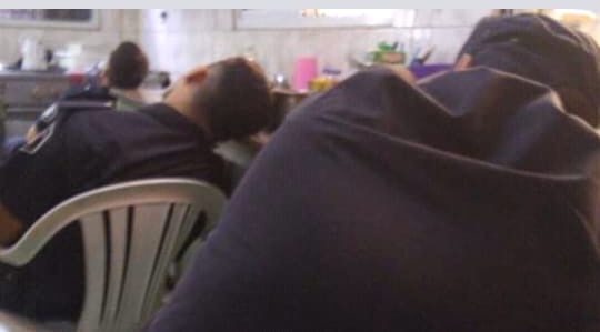 En las imágenes se puede ver a jóvenes policías que duermen sentados en sillas y tirados en el piso.