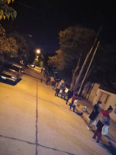 La casa familiar ubicada en Salado 968, se convirtió en un centro de entrega de comida en forma solidaria, es allí cuando abren a las 20:30hs, pero ya algunos vecinos hacen fila mucho antes, a la espera de un plato caliente.
