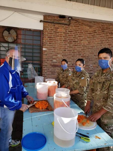 Los héroes de Malvinas dicen presente a la Patria, igual que hace 38 años, para colaborar con el Ejercito Nacional en la elaboración de las raciones que se distribuyen entre las familias más necesitadas.