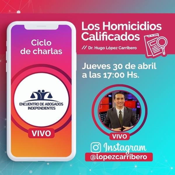 El prestigioso abogado penalista, Dr. Hugo López Carribero, disertará sobre Los Homicidios Atenuados en Cuarentena”.