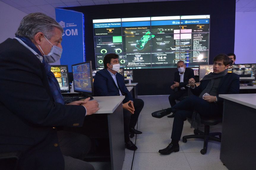 Kicillof subrayó que uno de los factores fundamentales para aplanar la curva de contagios del coronavirus es “el monitoreo que los intendentes realizan en toda la Provincia”. Y explicó: “Hoy en La Matanza, nos mostraron el funcionamiento de un software que geolocaliza a aquel que tiene algún síntoma de COVID y permite contar con una alerta temprana para hacer un seguimiento y actuar de forma adecuada. Es fundamental en la Provincia actuar anticipadamente”.