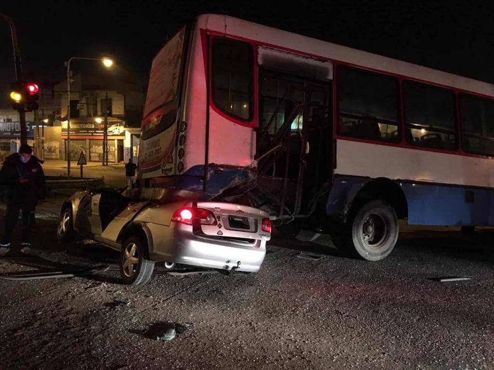 Un colectivo había embestido a un vehículo Chovrolet Corsa en el cruce de Ruta 3 y Federico Báez.