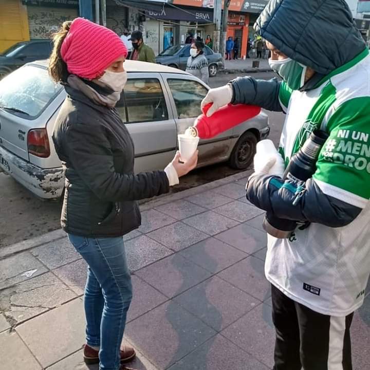 Por iniciativa de Laferrere Solidario, en el día de hoy, se repartieron barbijos y mate cocido caliente en la fila de todos los bancos de la ciudad matancera de Gregorio de Laferrere.