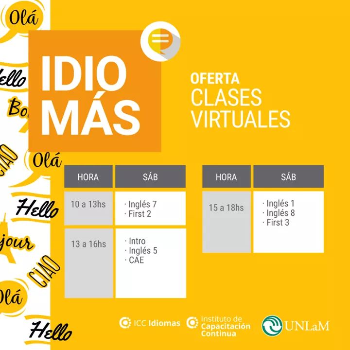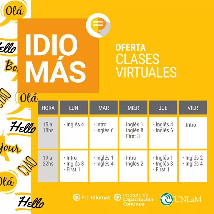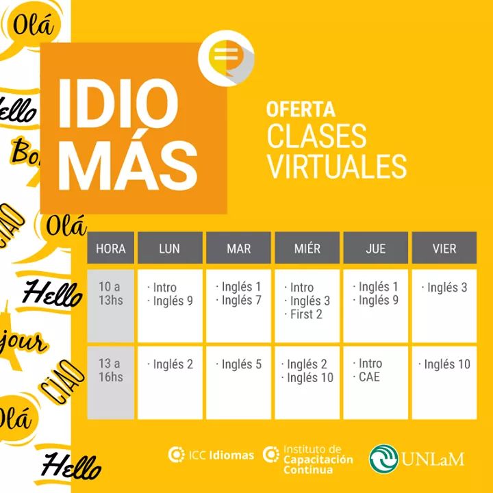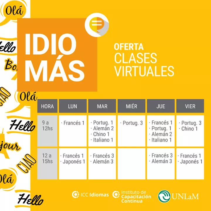 A continuación compartimos las placas con los idiomas y horarios de cursada: