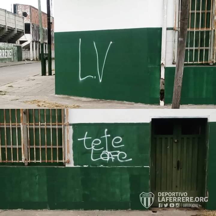 A tan sólo horas de realizarse mejoras de pintura en la fachada de la Sede Social, el espacio fue víctima de actos vandálicos.