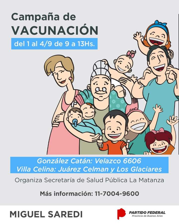 El Concejal de La Matanza y Presidente de la Mesa Política del Partido Federal, Miguel Saredi nos informó sobre la campaña de vacunación del Calendario Nacional en La Matanza hasta el 4 de septiembre.